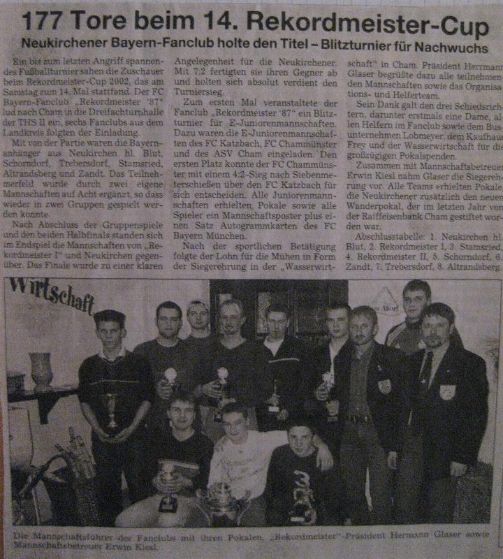 Artikel vom 12.01.2002 - Rekordmeiser-Cup Hallenturnier in Cham; 1. Platz