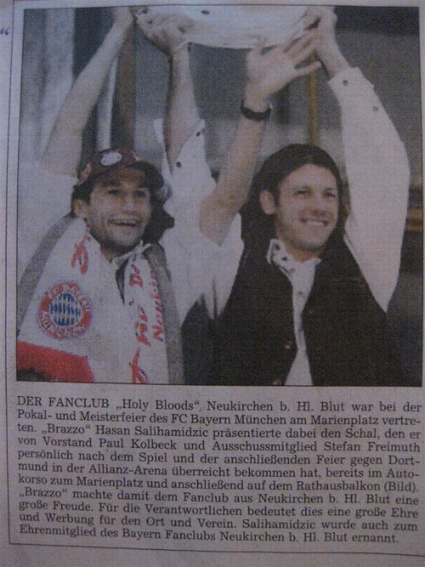 Artikel vom 15.05.2006 - Hasan "Brazzo" Salihamidzic mit unserem Fanclubschal auf dem Rathausbalkon