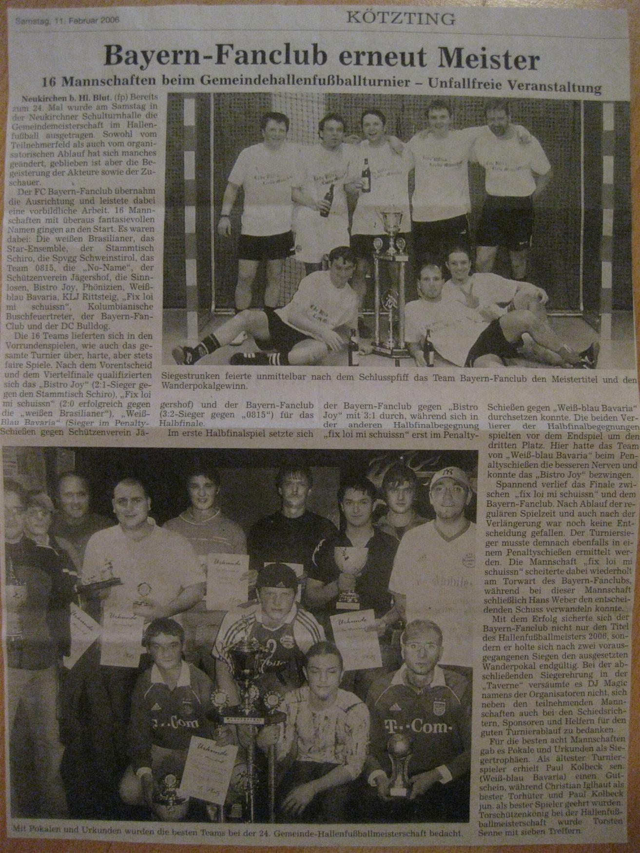 Artikel vom 11.02.2006 - Gemeinde-Hallenturnier in Neukirchen; 1. Platz