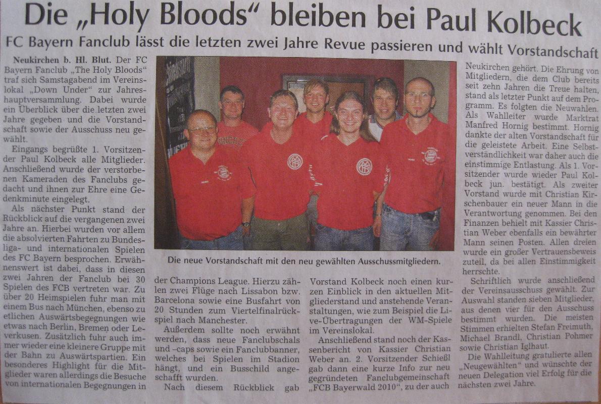 Artikel vom 26.04.2010 - Jahreshauptversammlung des Fanclubs