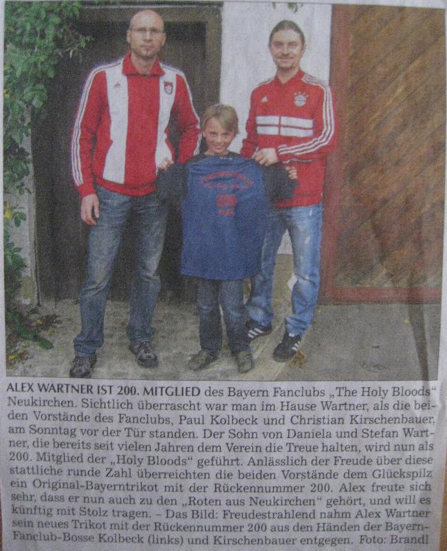 Artikel vom 09.12.2013 - Ehrung des 200. Mitglieds Alexander Wartner