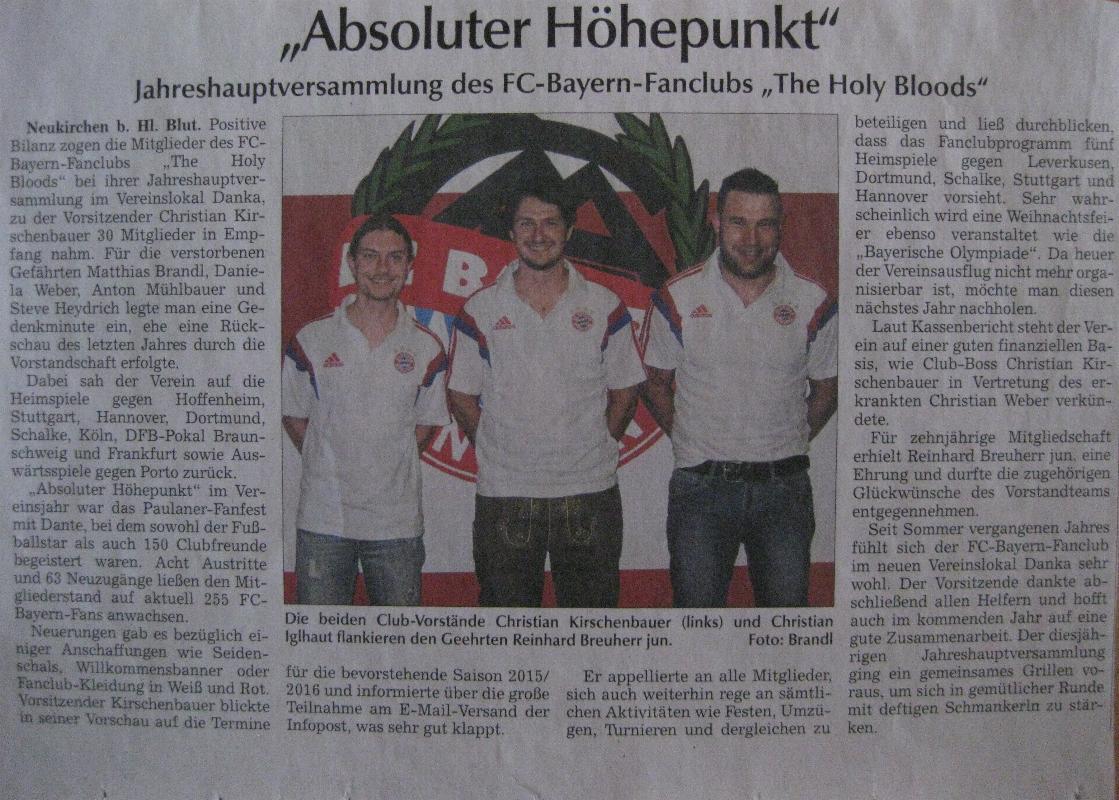 Artikel vom 13.07.2015 - Jahreshauptversammlung des Fanclubs